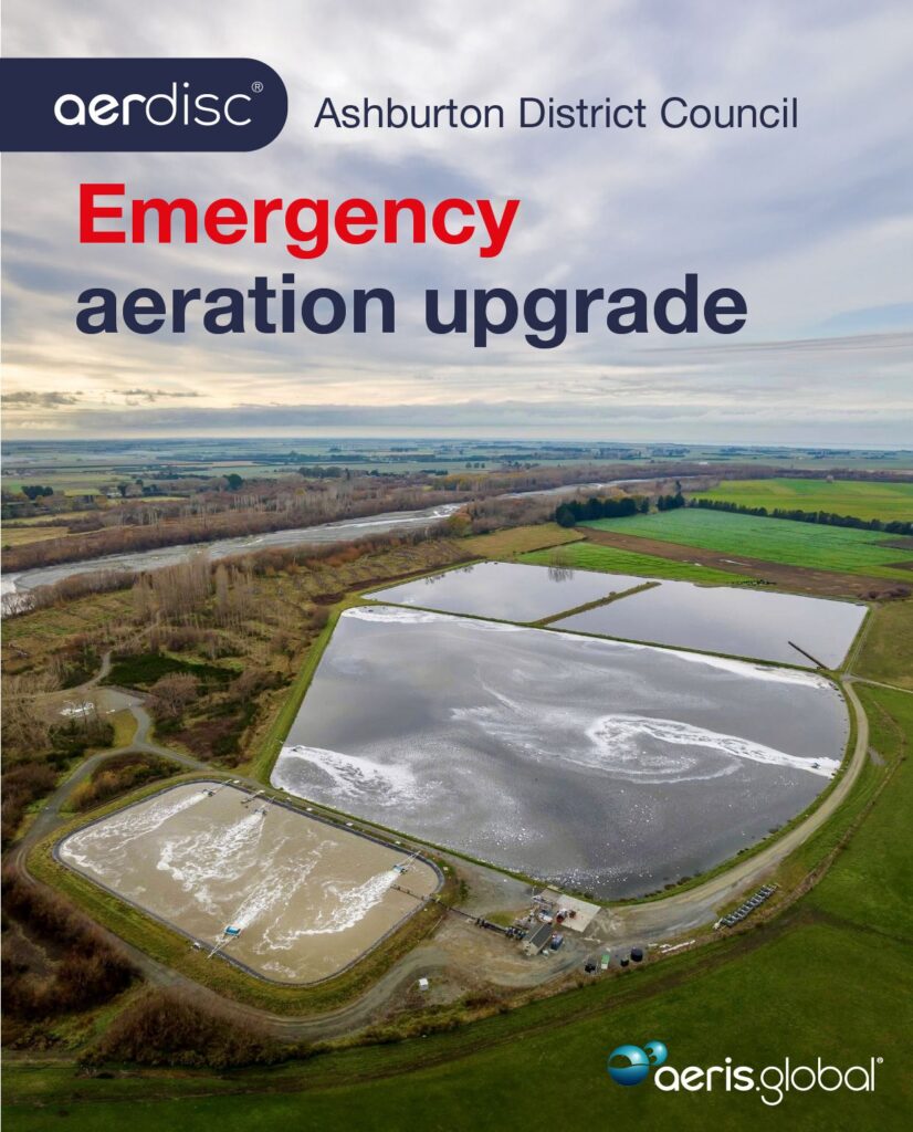 Seven aerdisc® Directional Aerators have been installed at Ashburton District Councils, Wilkins Road Wastewater Treatment Plant over the last three months. Three in the oxidation pond and four in the aeration basin. Previously, the aeration basin had Qty 10 x 7.5kW incline-shaft aerators, each including a side-channel blower, for a total energy of over 80kW, but […]